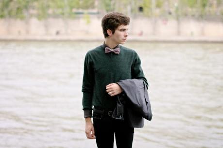 Jacket : The Kooples / Sweater : Gap / Shirt : Tout Simplement / Jeans : Fashops / Bowtie : Selected