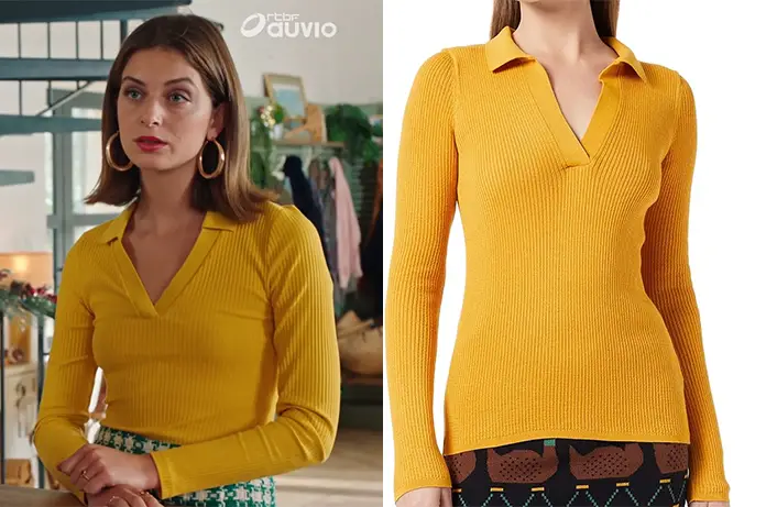 Partager sur Facebook Précédent Suivant ICI TOUT COMMENCE : le top moutarde de Carla dans l’épisode 1325 L'auteur de l'article : fringues de séries Voir l'article original Que portait Truc dans la série Machin ? Ce n’est certes pas la question la plus existentielle qui soit, mais elle n’en mérite pas moins une réponse. C’est ce que s’efforcera de faire Fringues de séries. capture d’écran « Ici tout commence » épisode 1325, source Auvio Carla (Aaricia Lemaire) porte ce top jaune côtelé dans Ici tout commence épisode 1325. On le trouve ici Cheffe costumière : Camille Bonneau Partager sur Facebook Précédent Suivant Vous aimerez sans doute Charger Plus