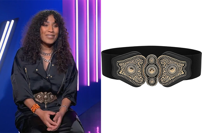 Joanna revient dans les lumières de TF1 pour une audition à l’aveugle dans The Voice, ce 28 mars. L’ex Star Academicienne portait une combi noire satinée que l’on trouve ici
