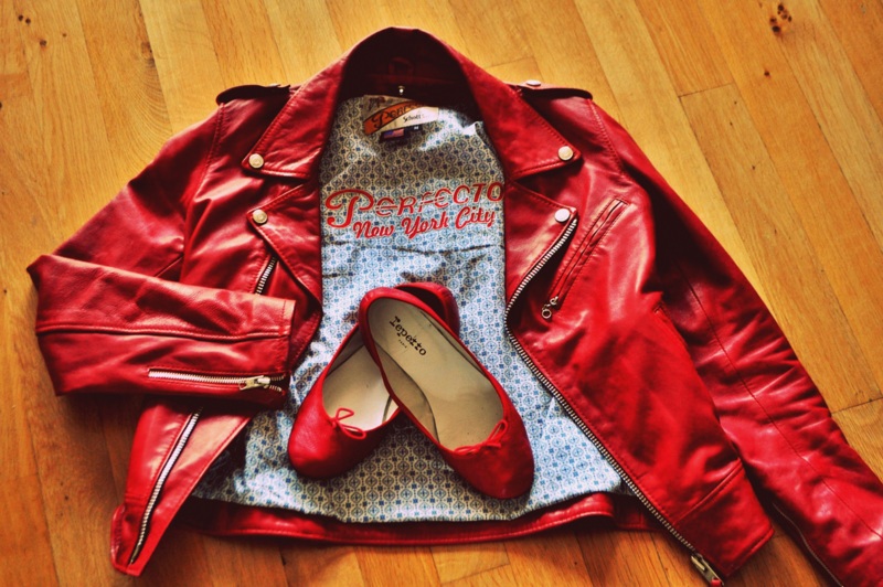 veste Schott - top et slim Mango - ballerines Repetto