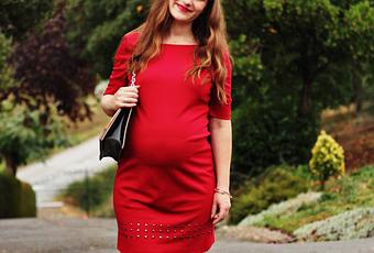 Lorsque j’ai fait la découverte de la boutique en ligne londonienne Wallis au printemps j’ai de suite été séduite par leurs vêtements chics. J’ai eu la chance de recevoir deux robes absolument fabuleuses dont une qui m’a accompagnée cet été au cours de ma grossesse. Souvenez vous. Ici c’était au début et là à déjà 6 mois passés! Autant vous dire que renouveler l’expérience avec la marque a été pour moi un vrai plaisir. J’ai donc porté mon choix cette fois-ci sur cette robe rouge. Coupe droite et féminine agrémentée de clous elle n’a pas besoin d’accessoires pour la relever. Son potentiel glamour est particulièrement appréciable. Côté matière je retrouve ici la bonne qualité des vêtements Wallis. Des tissus épais et de bonne facture. Les prix quant à eux sont carrément abordables. Comptez environ 36 euros pour cette robe rouge et dans les 30 euros pour le sac que je porte.