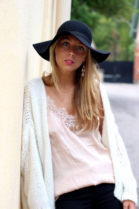 L'été laisse doucement place à l'automne et nos retrouvons les fraicheurs de Septembre, gilets, chapeaux, et jeans sont mes alliés.J'ai associé un gros gilet en maille blanc Easy Clothesà un top en dentelle nude. Easy Clothes c'est un eshop belge où l'on peut shopper de jolies pièce atypiques. J'ai choisis le gilet Bernadette blanc très doux et chaud, je compte même me laisser tenter par un autre coloris !