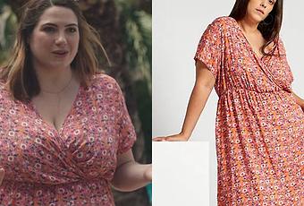 Audrey (Charlotte Gaccio) a une ravissante robe à fleurs pour rencontrer le couple Samuel/Alma dans Demain nous appartient 996. On la trouve ici