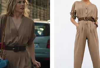 Jul (Maud Baecker) se promène dans une combinaison en lin couleur vison dans L’Amour (presque) parfait épisode 5 (France 2). Il s’agit d’un modèle Zara, en rupture de stock.