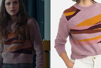 Garance (Esther Valding) se retrouve chez Gabriel dans l’épisode 1152 de Demain nous appartient. Elle porte un pull avec des motifs de toutes couleurs. On le retrouve ici