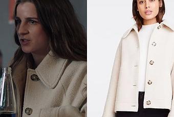 Dans Demain nous appartient 1157, Garance (Esther Valding) porte ce manteau beige avec des boutons contrastants en écailles de tortue. On le trouve ici
