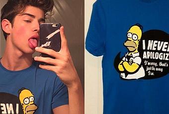 Manu Rios porte, sur Instagram, ce t-shirt en l’honneur de Homer Simpson.