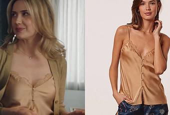 Constance (Sabine Perraud) porte ce ravissant caraco sable dans Ici tout commence 403.